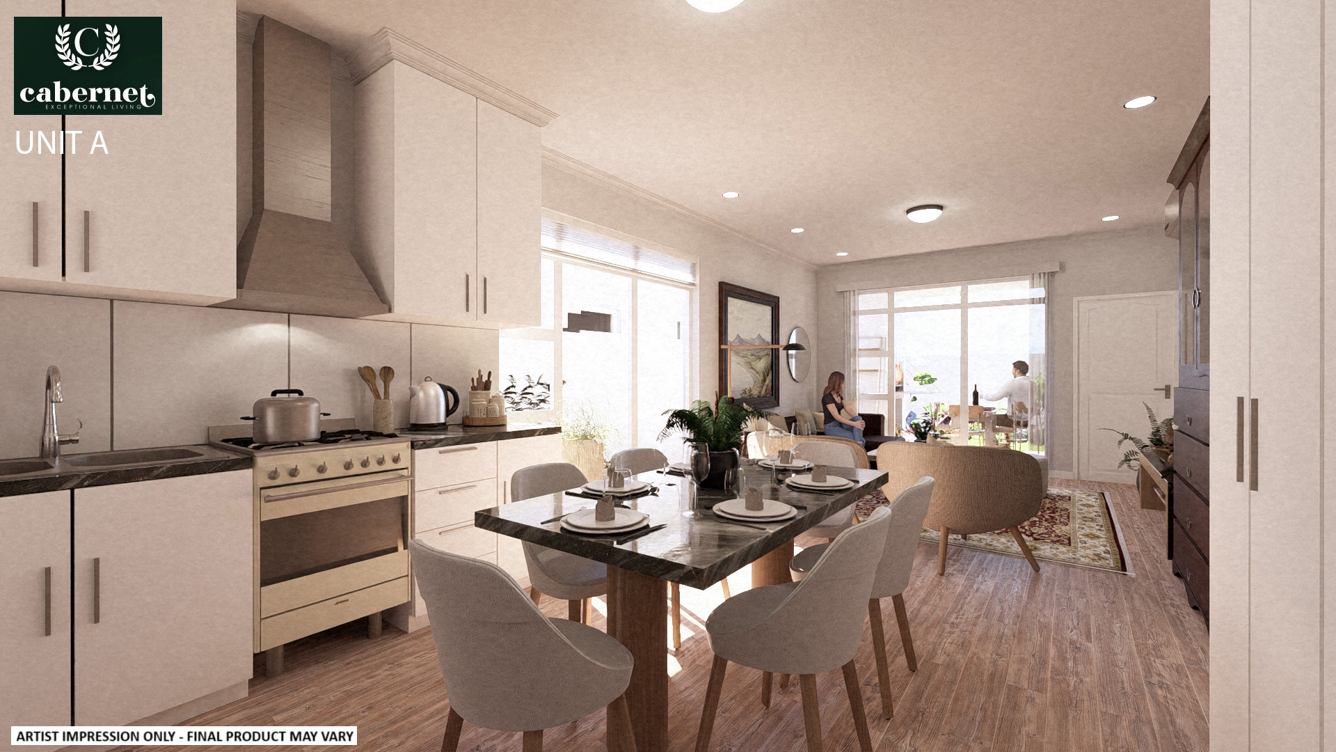 It is rare to find a modern, new-built property in a secure development in Onrus. Each home in Cabernet consists of an open-plan living, dining, and kitchen area with a sliding door opening to an under-roof entertainment area complete with a stainless steel built-in braai. Three bedrooms, two bathrooms with the main en-suite and a double garage with direct access to the home.